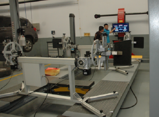 本产品能够真实模拟汽车车轮定位系统的几何运动关系,真实再现四轮定位检测的全过程。根据主销倾角角度分量独立生成原则和不等角位移原理,利用角度细分技术,实现对四轮定位仪测量车轮外倾、前束、主销后倾和主销内倾等各项主要功能的检定。本产品能通过设定使模拟主销处在空间位置,得到原理正确的投影并正确检定主销后倾角,该功能是我们产品的独有特点之一。